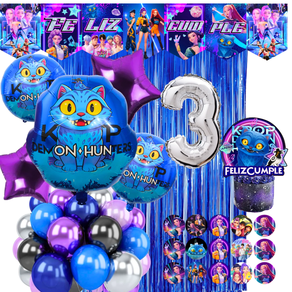 ¡Llegó el pack más tierno, divertido y lleno de magia K-Pop! Esta versión especial está inspirada en Derpy, el adorable tigre de Demon Hunters, uno de los personajes más queridos por los chicos. Su color vibrante, ojos expresivos y estilo kawaii transforman la fiesta en un escenario lleno de luz, música y energía K-Pop. Este pack ofrece decoración completa y lista para usar, diseños coloridos y modernos, y la practicidad de armar toda la ambientación en minutos. Perfecto para fans del universo Demon Hunters que aman el estilo dulce y llamativo de Derpy. El pack incluye: